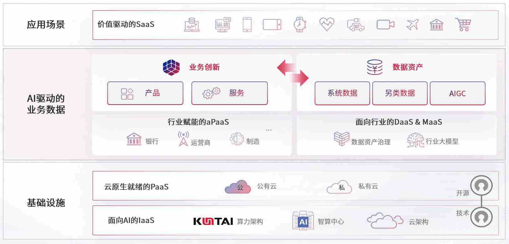 数字时代,,,,围绕企业数字化转型的关键要素,,,,彩霸王数码开创性的提出数云融合战略和技术体系框架,,,着力在云原生、、数字原生、、AI原生和信创产业上架构产品和服务能力,,为处在不同数字化转型阶段的快消零售、、、汽车、、、金融、、医疗、、、政企、、、教育、、、运营商等行业客户提供泛在的敏捷IT能力和融合的数据驱动能力,,,构建跨界融合创新的数字业务场景和新业务模式,,,,助力企业级客户建立面向未来的核心能力和竞争优势,,,全面推动社会的数字化、、、、智能化转型升级。。。
